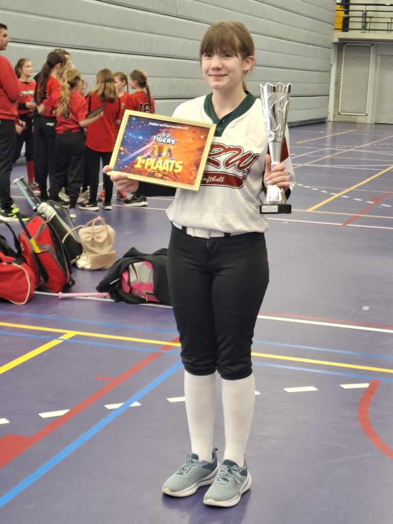 Unsere Spielerin Katharina ist zur NRW Auswahl eingeladen worden. Mit der Mannschaft spielte sie am 1. März ein Indoor Turnier in Enschende. Neben der U13-Auswahl aus Nordrhein-Westfalen nahmen zwei Mannschaften der Gastgeber Tex Town Tigers, eine Mannschaft der Amsterdam Pirates und eine Mannschaft aus Haarlem Kienheim teil. Die NRW-Auswahl konnte alle Spiele gewinnen und holte nach dem Sieg im letzten Jahr erneut den Titel. Katharina spielte in allen Spielen und hatte mit einigen guten Schlägen ihren Anteil am Turniersieg.